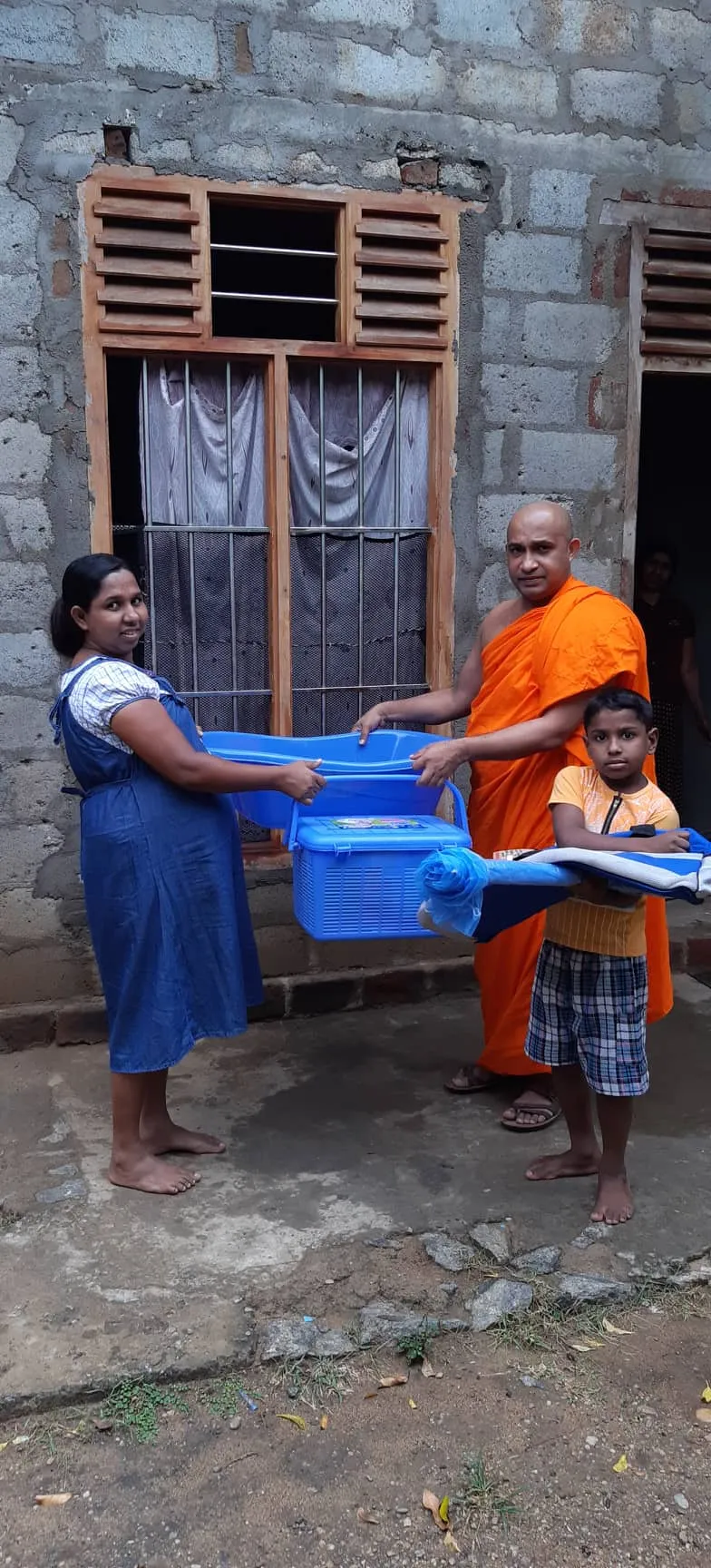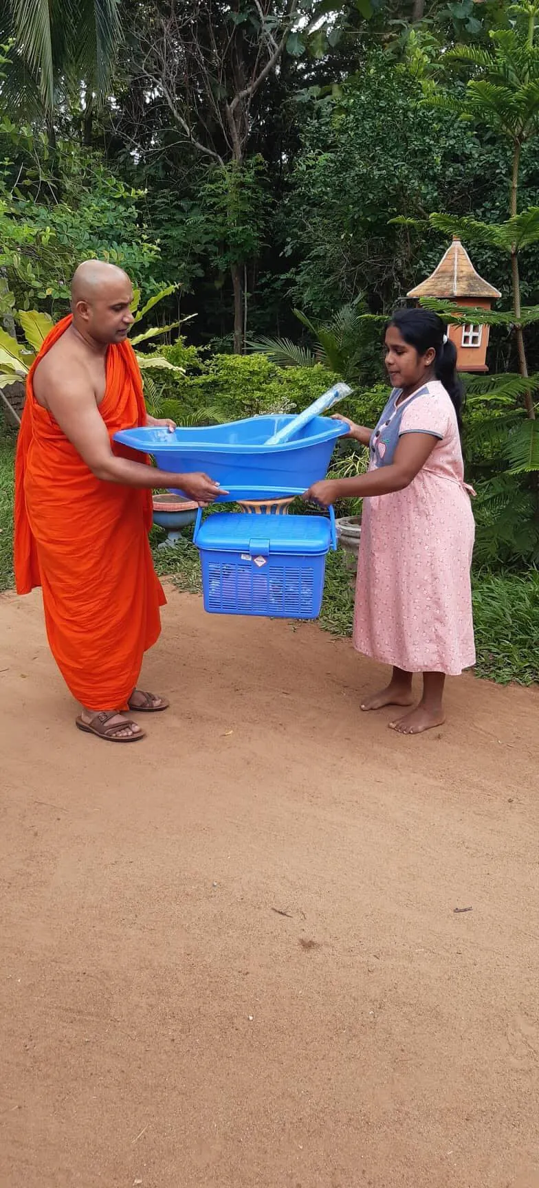 This project that we are supporting was initially started in year 2000 by Buddiyagama Dhammasena Thero to help and support the deserving pregnant women in rural areas with the essential items that they need at the hospital for a new born. The goal is to provide 10,000 give away essential baskets per year Islandwide.