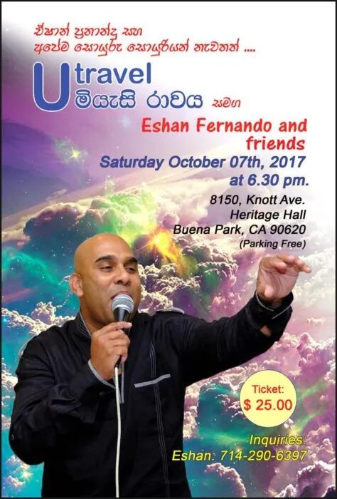 A musical night with Eshan Fernando Tickets: $25.00 Contact: Eshan Fernando (714) 290 6397