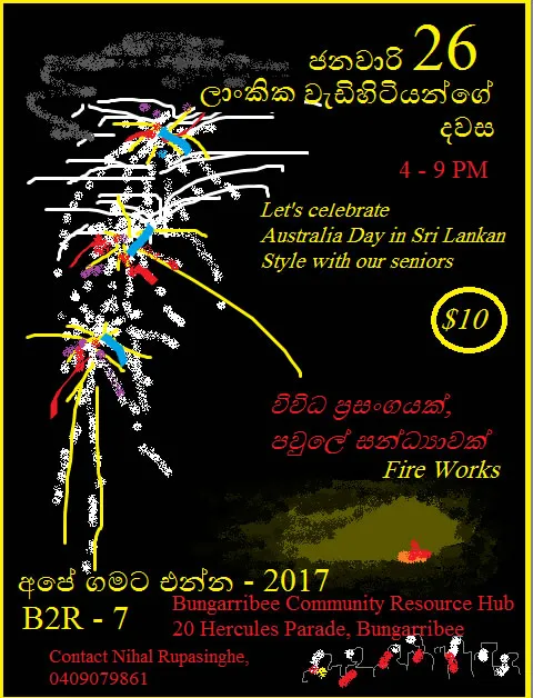 Celebrate Australia Day Sri Lankan Style with our seniors Tickets: $10 For more information contact [...]