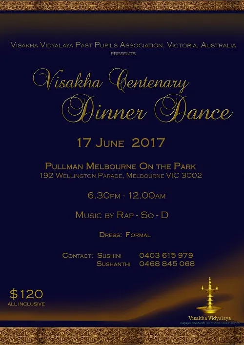 ***Celebrating 100 years of Visakha***Centenary Dinner Dance organised by Visakha Vidyalaya Past Pupils Association Victoria. [...]