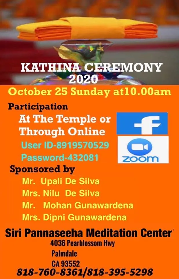 Organized by the Maryland Buddhist ViharaZoom ID: 667 378 6966