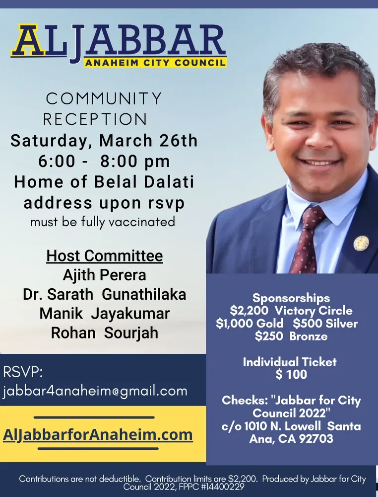 RSVP:jabbar4anaheim@gmail.com
