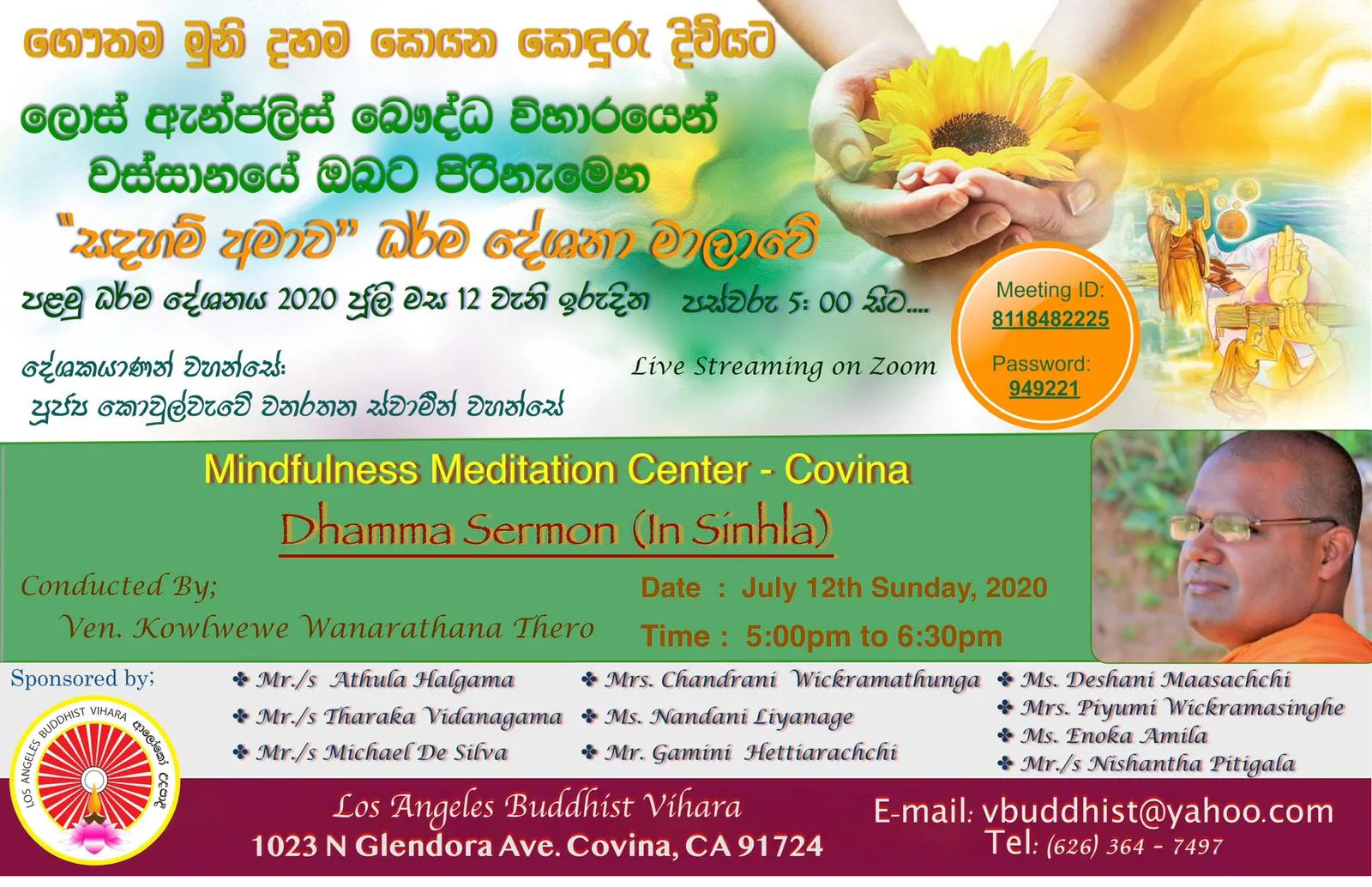 Dhamma Sermon (In Sinhala) live streaming on zoom organized by Mindfulness Meditation Center - Covinaconducted [...]