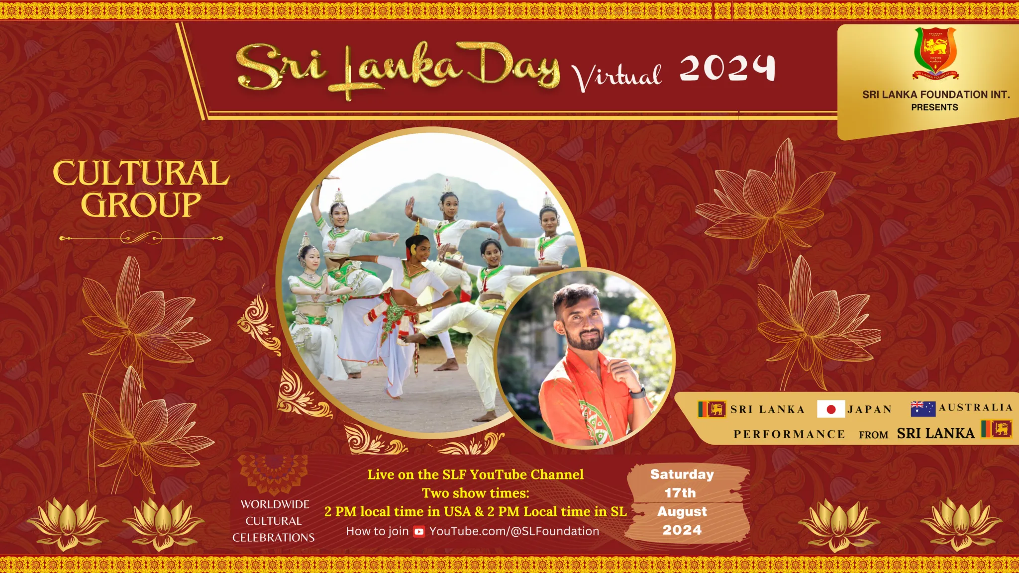 Sri Lanka Day 2024, a global virtual celebration, will be launched in the United States on the Sri Lanka Foundation International YouTube channel on August 17th, 2024. This event will showcase the rich artistic traditions of Sri Lanka, including music, dance, and visual arts. As part of the cultural show of the Sri Lanka Day 2024 celebration, you will experience Sri Lanka, known as the pearl of the Indian Ocean’s rich cultural heritage, offering a fascinating array of three main forms of traditional dances including upcountry known as Kandyan Style, Low country known as Pahatharata Style and, Samabaragamuwa style that captivates both locals and tourists alike. This item is a creative fusion comprising all three forms vibrantly and expressively and those styles are deeply rooted in the country’s history, religion, and folklore. Each dance style has its own unique story and intricate movements showcasing the beauty and diversity of Sri