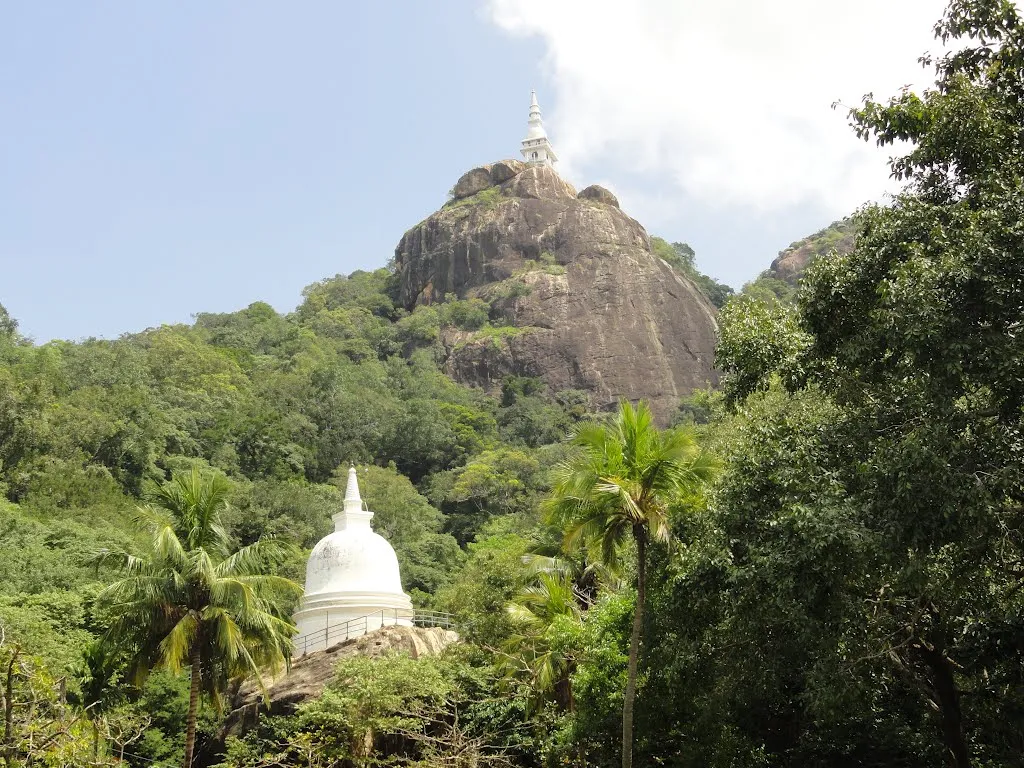 The Dimbulagala Raja Maha vihara 16 kilometres south east of the ancient city of Polonnaruwa, Sri Lanka and is home to a number of caves cut into the rock with Brahmi inscriptions over their drip ledges. It is said that King Pandukabhaya of Anuradhapura lived here for a short period in the 4th century and that King Parakramabahu II, in the 13th century Dimbulagala Maha Kassapa Thera helped the King with the purification and renewal of the Buddhist order.