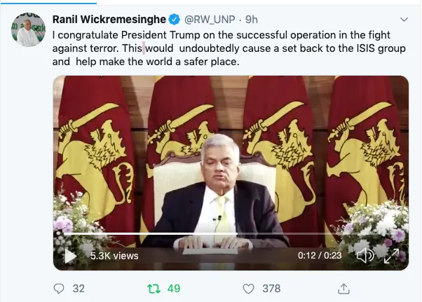 I congratulate President Trump on the successful operation in the fight against terror. This would undoubtedly cause a set back to the ISIS group and help make the world a safer place. pic.twitter.com/trI0KNZ56o