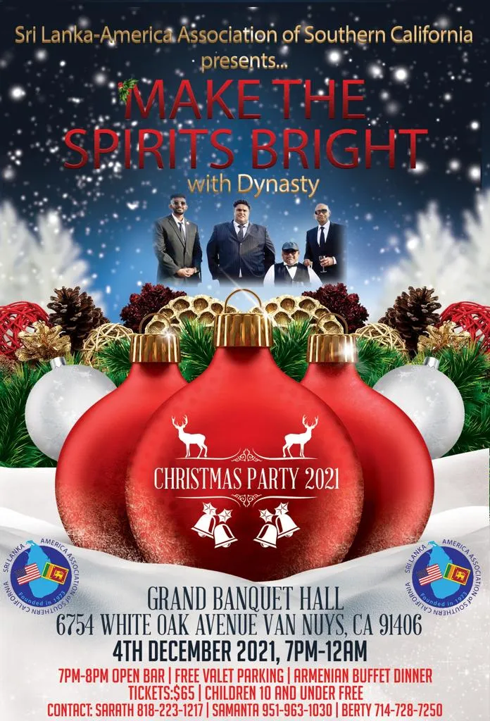 Organized by the Sri Lanka- America Association of Southern California (SLAASC)Tickets $65.00 7pm to 8pm:Open [...]