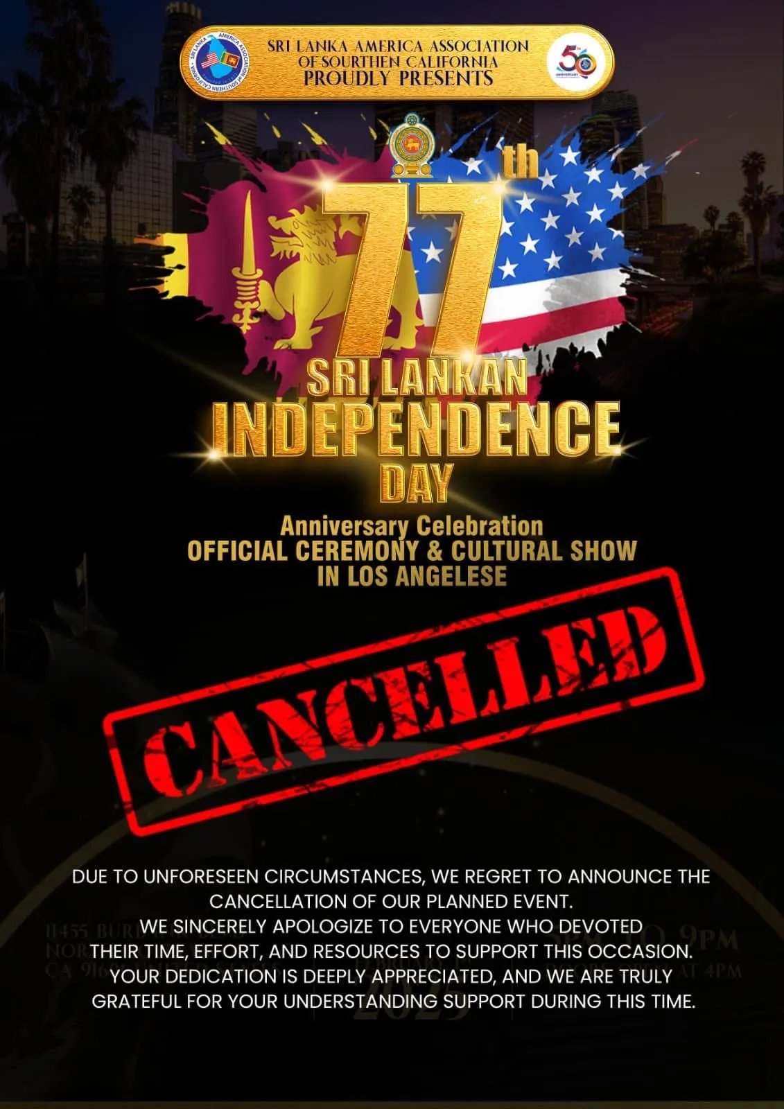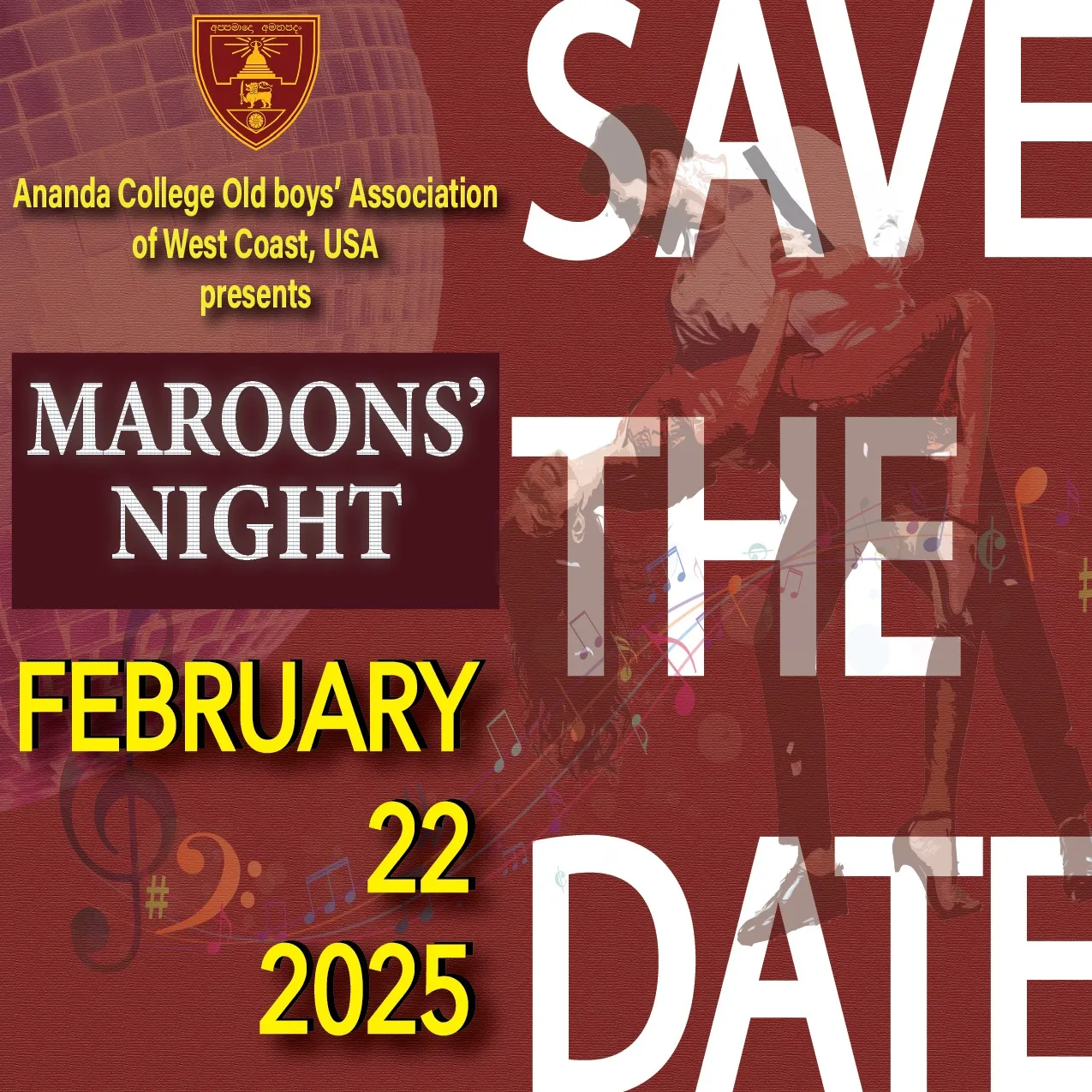 SAVE THE DATE! Organized by the Ananda Collage Old boys' Association of West Coast, USA