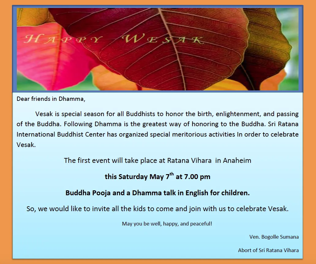 Sri Ratana International Buddhist Center 2780 Lincoln Ave, Anaheim, CA, United StatesVesak is special season for all Buddhists to honor the birth, enlightenment, and passing of [...]