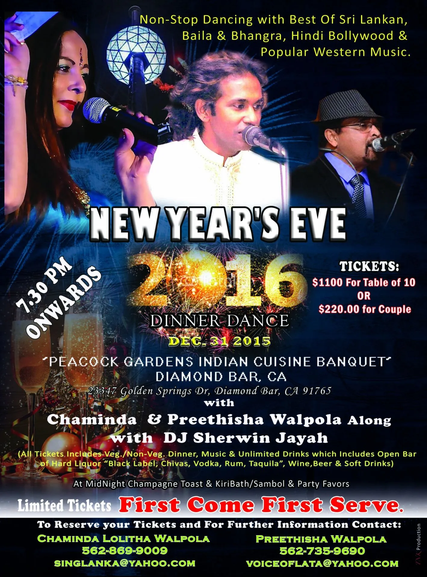 2016 NEW YEAR'S EVE DINNER DANCE WithCHAMINDA & PREETHISHA WALPOLA & DJ SHERVIN JAYAH Tickets:Tickets [...]
