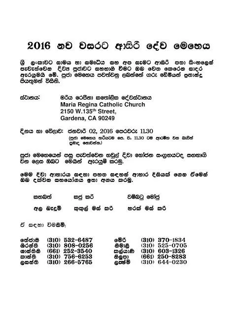 A special Sinhala Service will be headed by Father Damian Fernando. Lunch will be held right [...]