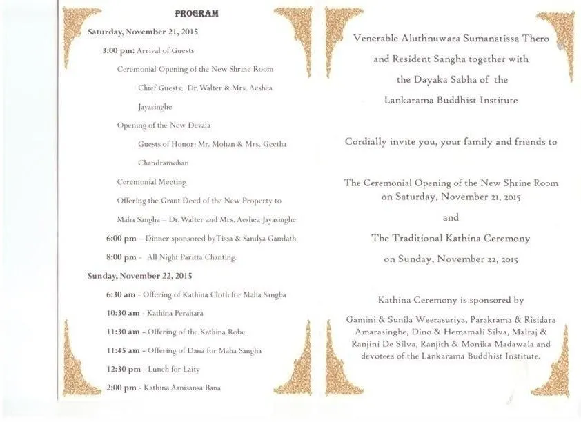 Kathina Ceremony, Ceremonial Opening of the New Shrine Room, Devala and Offering the Deed of [...]