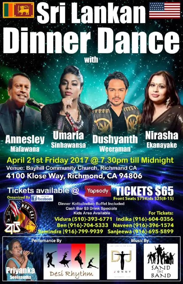 Sri Lanka Dinner Dance at the Bayhill Community church in Richmond, California. Performances by popular [...]