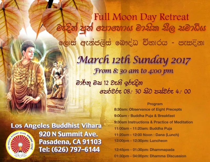 Fee: FREE open to all Contact: Dhammapeethi Thero (626) 486 5656