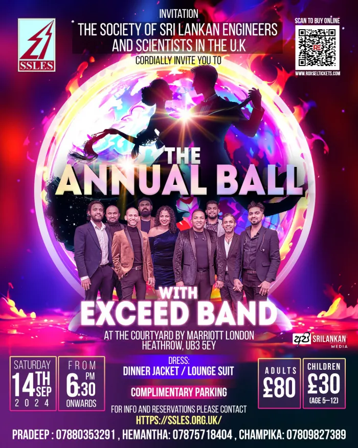 For inquiries, call Pradeep 07880353291. For tickets visit: https://www.roxseltickets.com/tickets/ssles-uk-annual-ball-287254