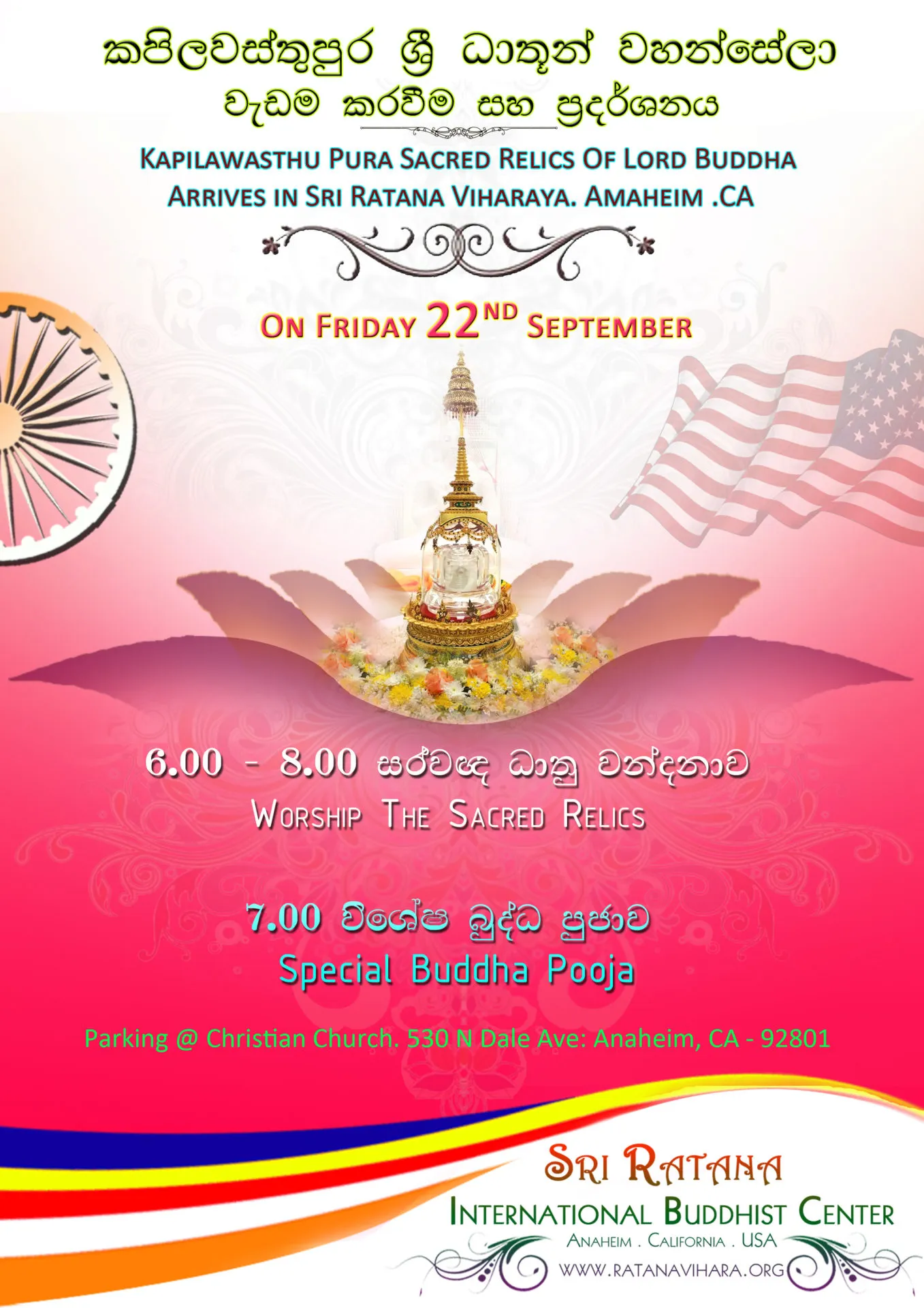 Worship the Kapilawasthupura sacred relics of lord Buddha Fee: FREE all are welcome Contact: Sri [...]