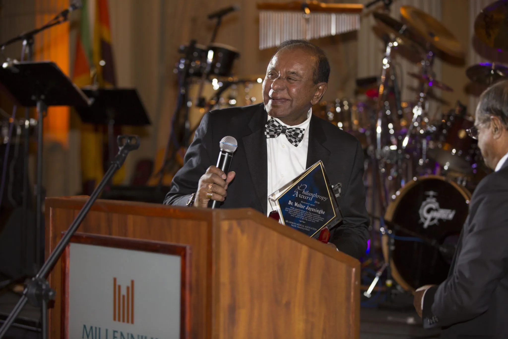 Amidst a standing ovation Dr. Walter Jayasinghe received the “Philanthropist of the Year” award at the Sri Lanka Medical Association North America-west’ biennial fundraiser “A Night of Hope.” Dr. Jayasinghe was bestowed this award for his desire to promote the welfare of others, generosity, kindness and humanitarianism.